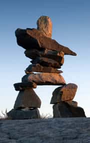 O agrupamento de pedras inukshuk faz parte de um marco da cultura nativa canadense. As pedras formam uma espécie de mosaico.